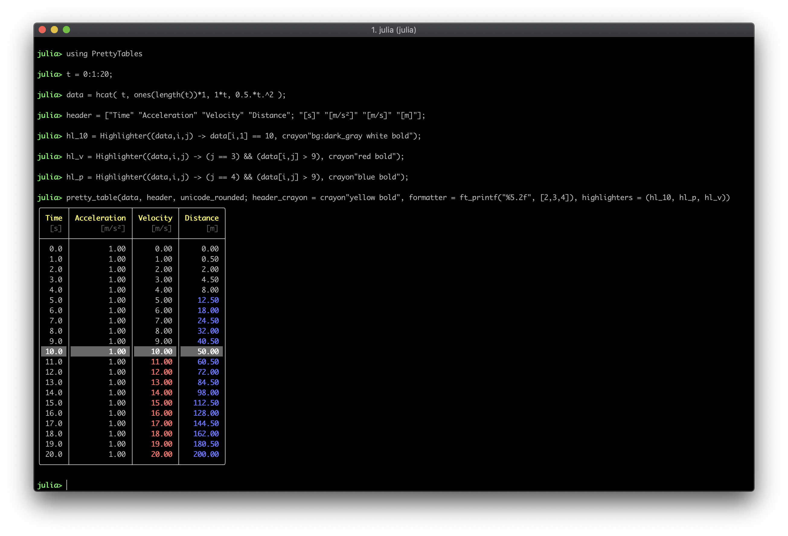 julia> Pkg.add("PrettyTables")